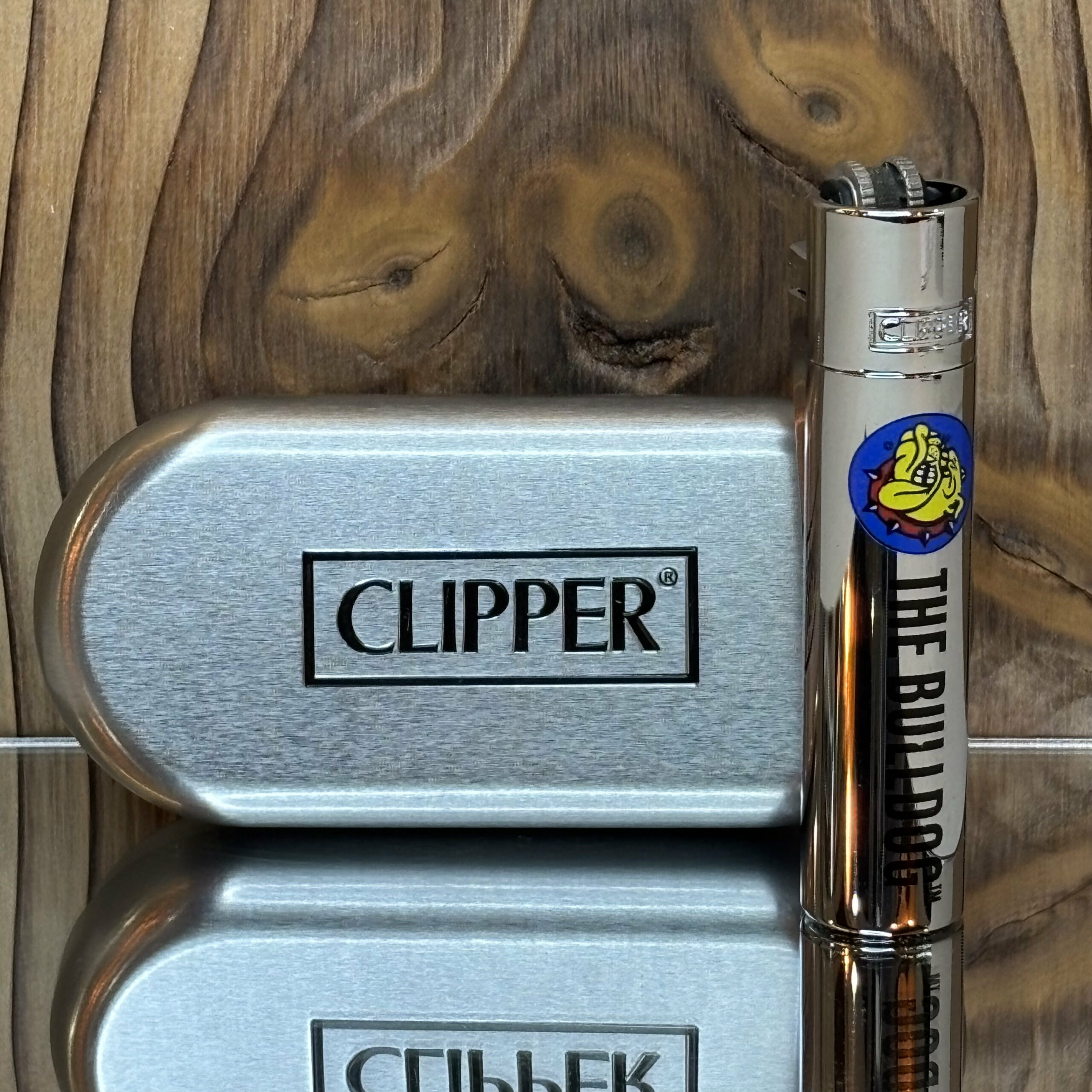 Briquet Clipper en métal chromé multicolore livré avec son étui rigide premium. Réutilisable, robuste et élégant.