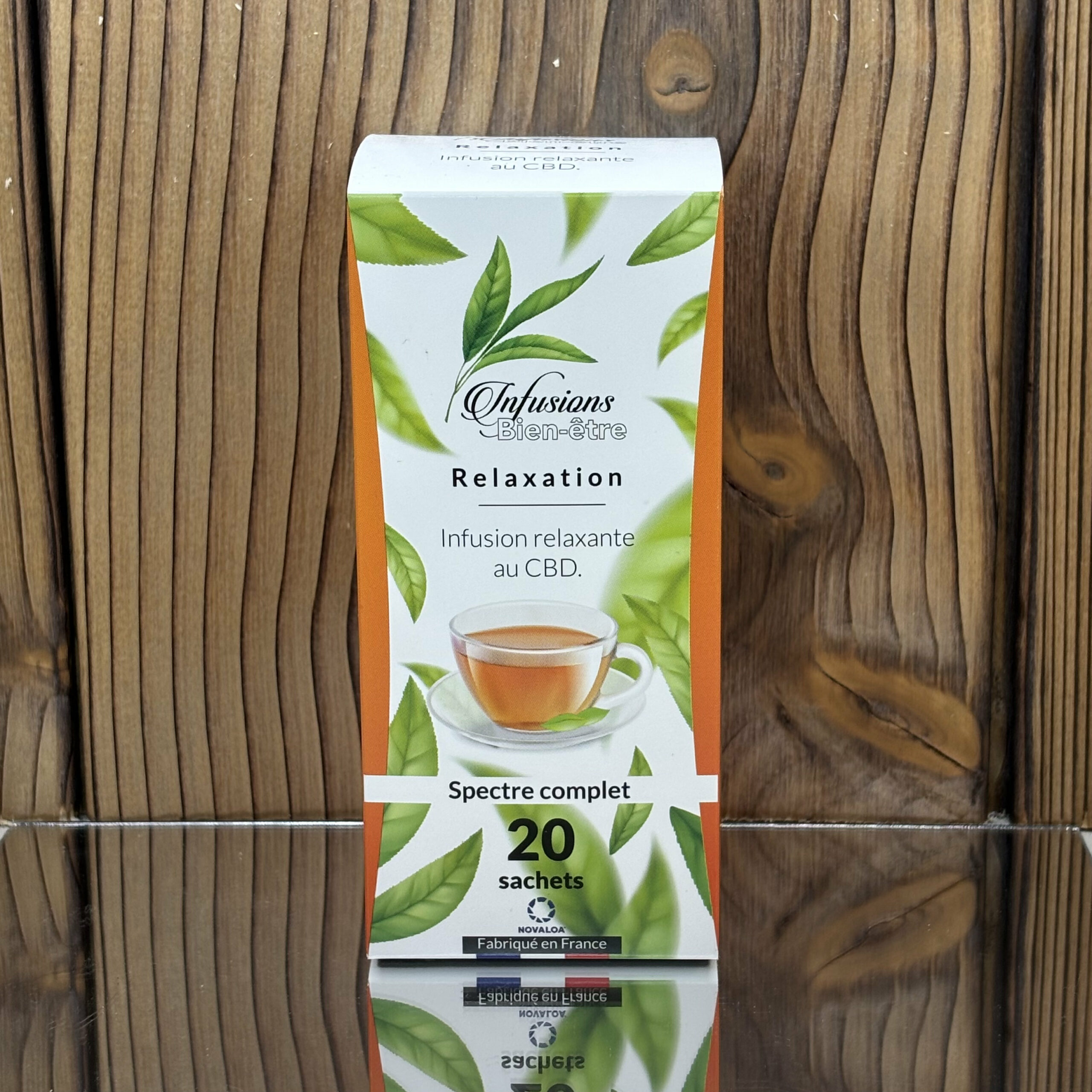 La tisane CBD Relaxation associe plantes apaisantes et CBD spectre complet pour réduire le stress et favoriser une détente douce. Parfaite pour se recentrer ou décompresser naturellement.