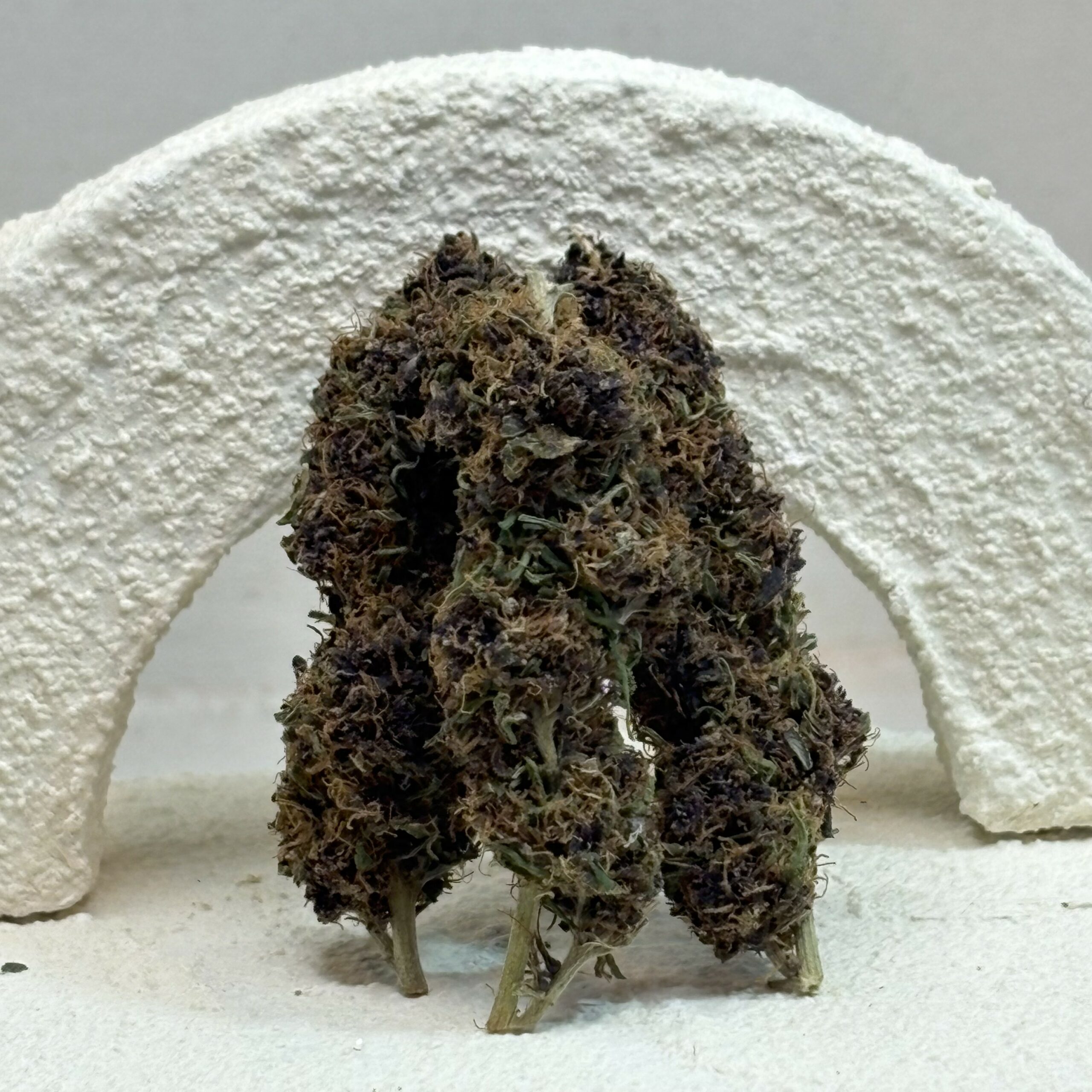 Hybride à dominance Indica issu de la famille OG, la Purple OG est reconnue pour son profil terpénique complexe et sa couleur violette naturelle. Cultivée majoritairement en intérieur pour garantir une qualité optimale, elle séduit par ses longues têtes denses, recouvertes de pistils clairs et d’une généreuse couche de trichomes.