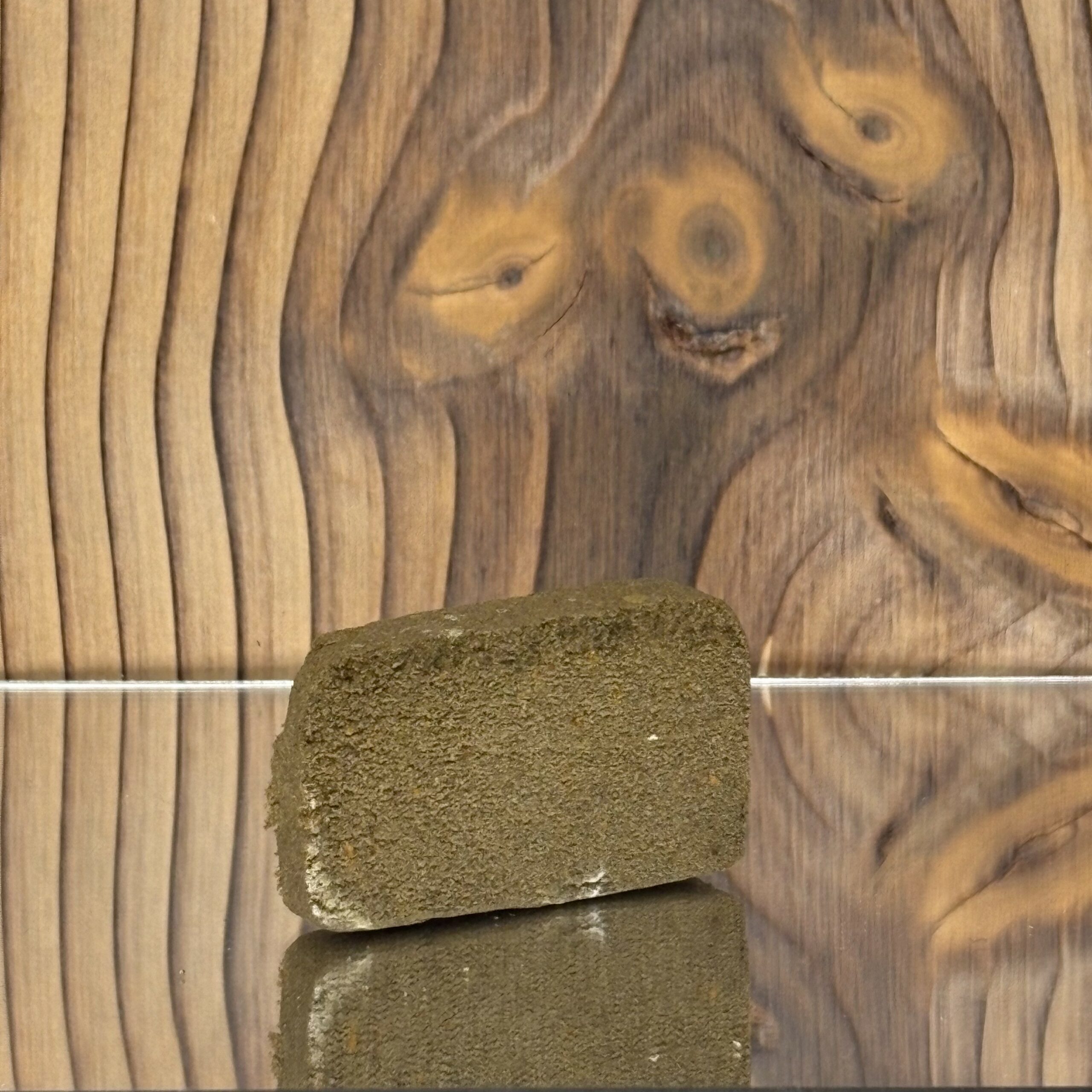 Résine RIF Indica 14% premium. Texture dense, malléable et compacte. Couleur sombre issue d’un mélange de pollens de haute qualité. Taux de THC < 0,3 %, conforme à la législation française. Testée en laboratoire pour garantir pureté, conformité et absence de contaminants.